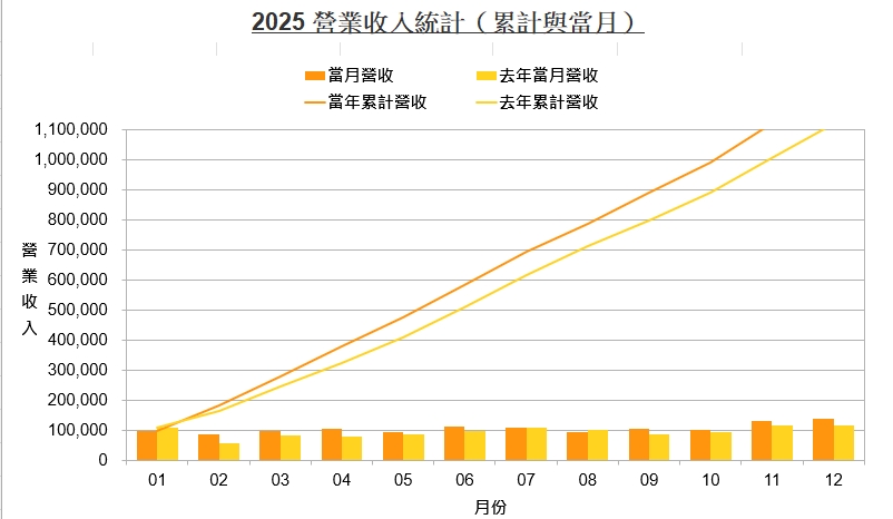 | 當月營收 | 去年當月營收 | 去年同月增減(%) | 當年累計營收 | 去年累計營收 | 前期比較增減(%) | ||